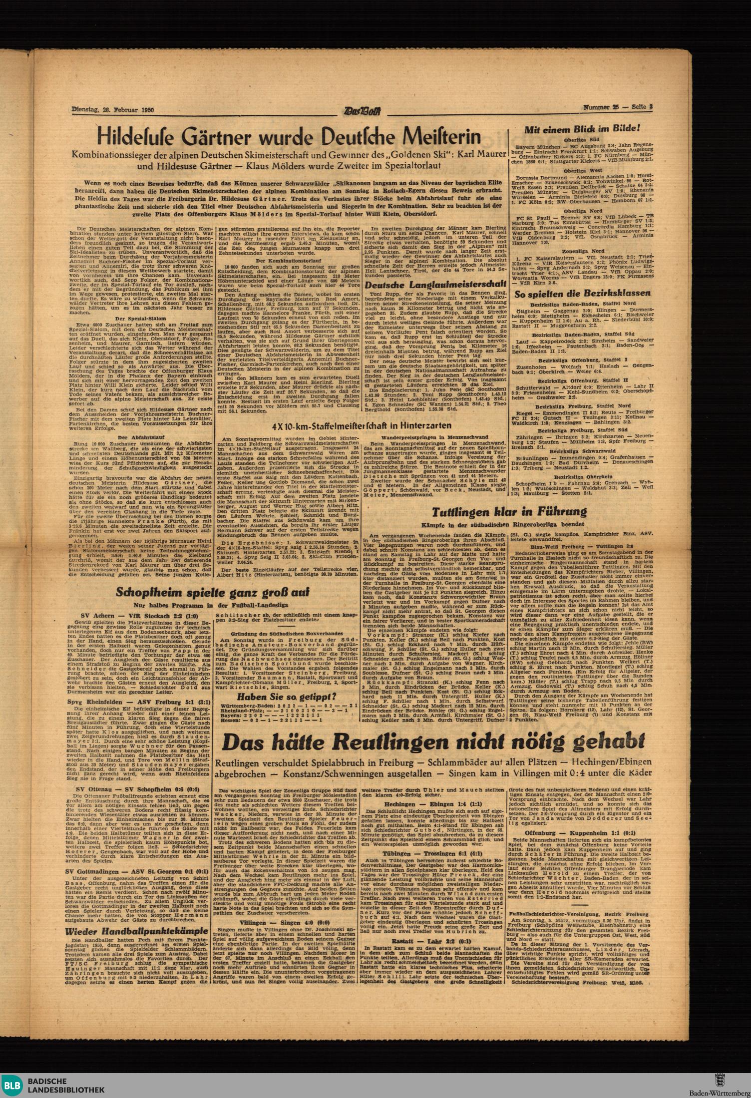 - Deutsche Langlaufmeisterschaft. In: Das Volk, Ausgabe Nr. 25 vom 28. Februar 1950, Seite 3. Abrufbar unter: digital.blb-karlsruhe.de.