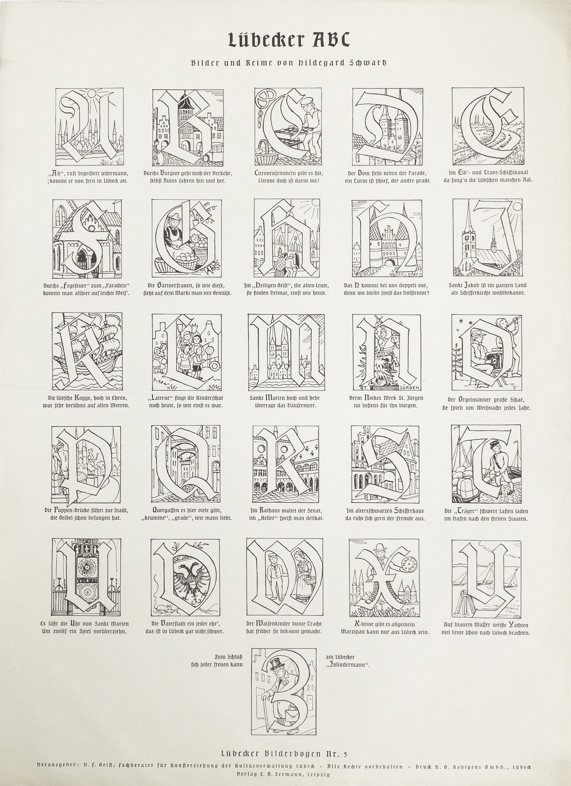 - Lübecker ABC - Bilder und Reime. (= Lübecker Bilderbogen 5) Leipzig: E. A. Seemann 1938 (Digitalisat, Museum Europäischer Kulturen)