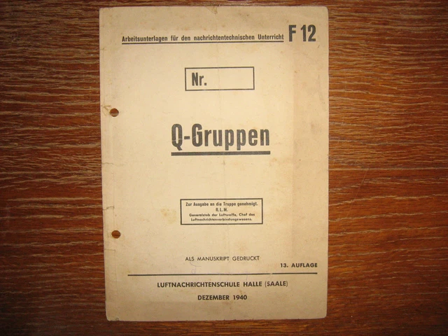 - ↑ Q-Gruppen. In: Luftnachrichtenschule Halle (Hrsg.): Arbeitsunterlagen für den nachrichtentechnischen Unterricht. 13. Auflage. Halle (Saale) Dezember 1940, S. 1 (picclickimg.com [WEBP; 70 kB]).