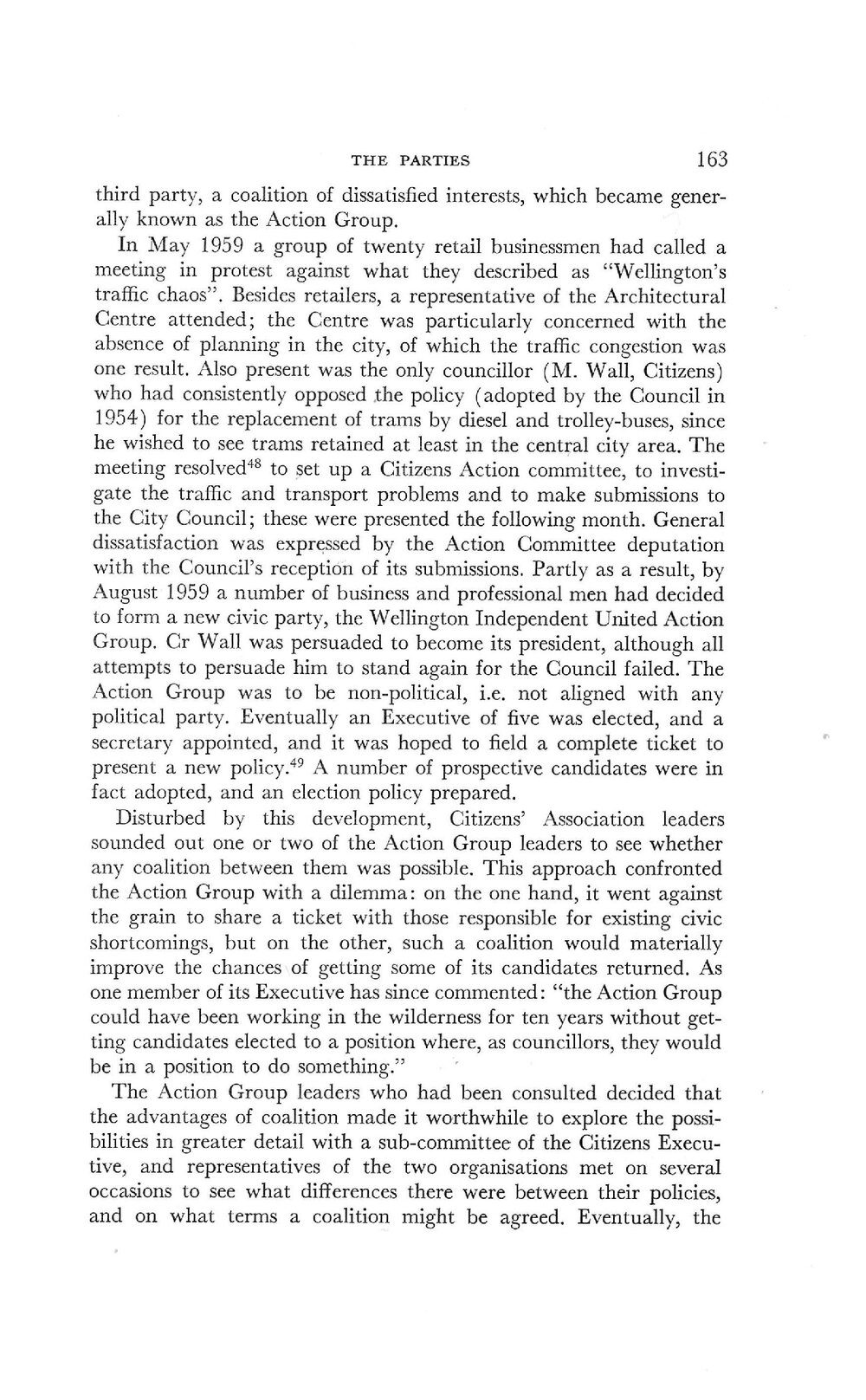 In May 1959, a group of retail businessmen convened a meeting to protest what they described as "Wellington's traffic chaos."[156] Councillor Max Wall, who had opposed the policy of replacing trams with buses, also attended and argued that trams should be retained at least within the central city.[156] The meeting resolved to establish a committee to investigate the city’s traffic problems and make submissions to the Wellington City Council. However, the committee later expressed dissatisfaction with the Council’s response to its proposals.[156]